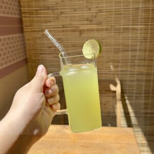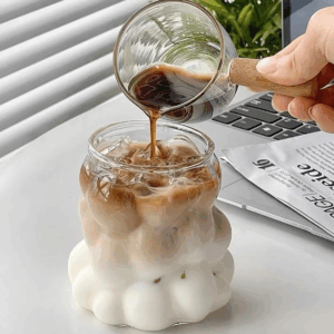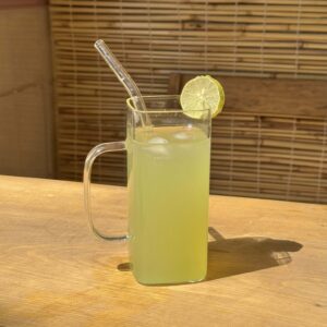 لیوان پیرکس درب بامبو مدل B به همراه نی