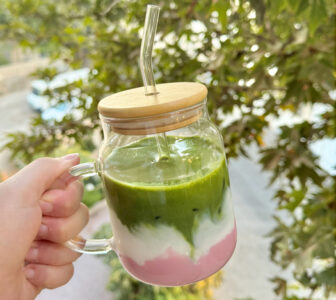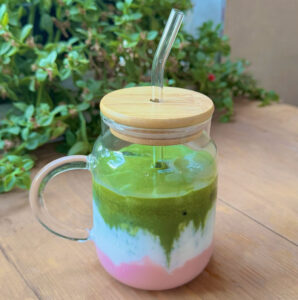 لیوان پیرکس مربعی بلند درب بامبو به همراه نی